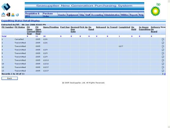 It must be noted that at a given time only one of the columns displaying the month and day for the expediting status will be populated since a given PO record will have only one of the expediting statuses at any given point in time.