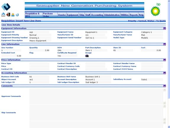 Main Menu > Requisition & RFQ > Requisition Insert New Line Items - Line Item Details