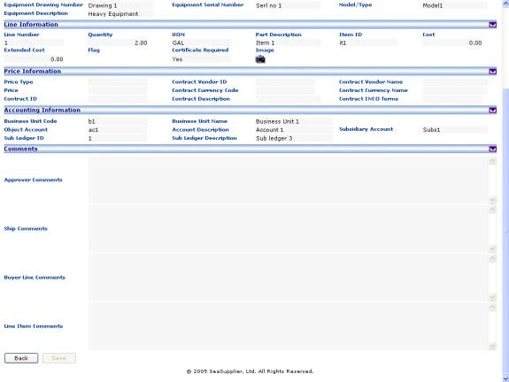 This indicates certificate information of the requisitioned item selected from the line items grid.
